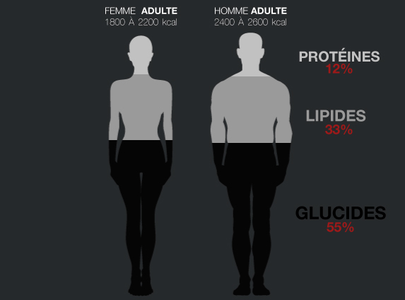 La consommation de ces calories doit être idéalement composée de la sorte :